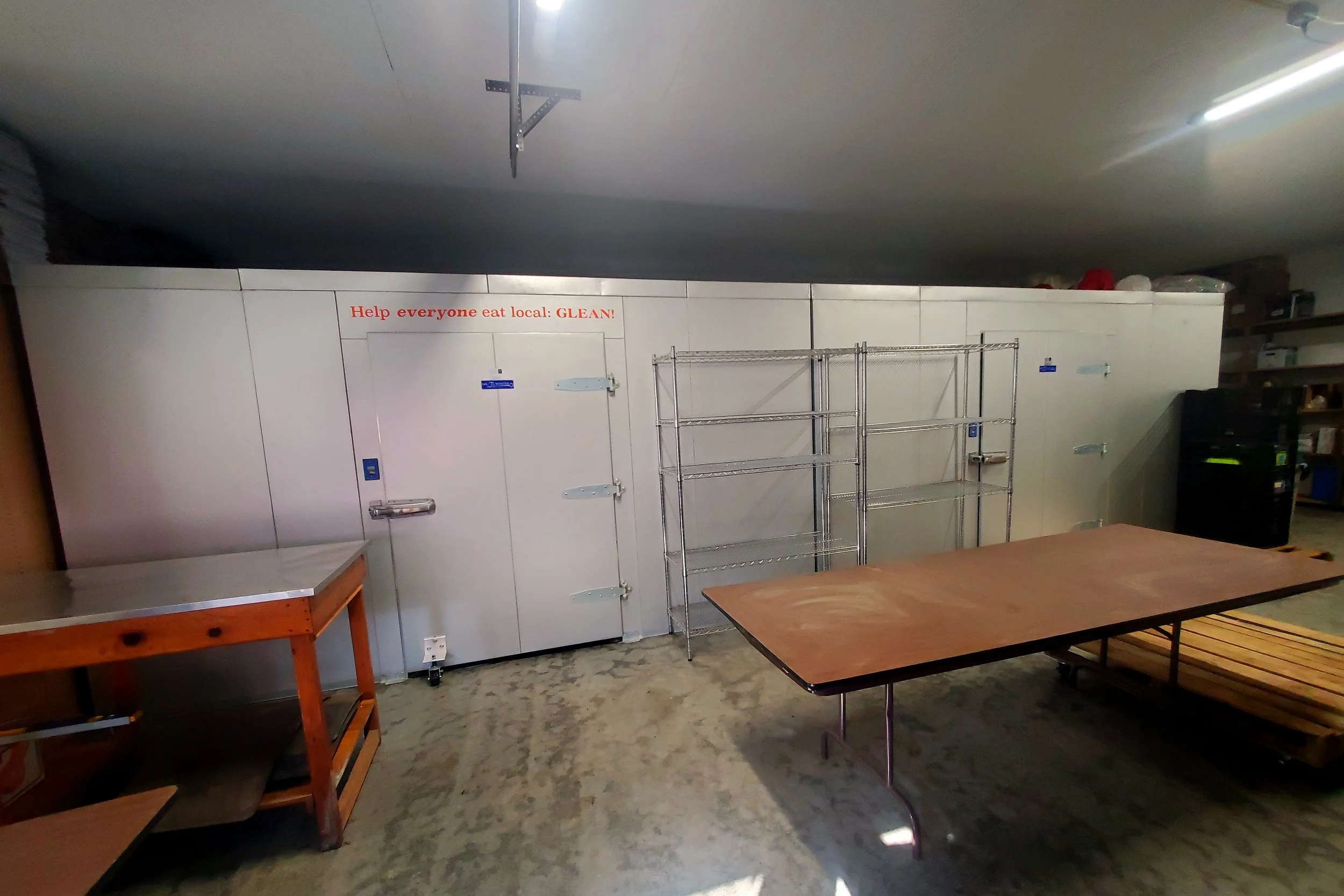 This hard-working building, which is our cooler, has been holding most of the food we glean since the community helped us build it in 2016. it’s 140 square feet of 36 degree space. The new facility and two additional new coolers will increase our cooler space to 410 square feet with 3 possible temperature zones.